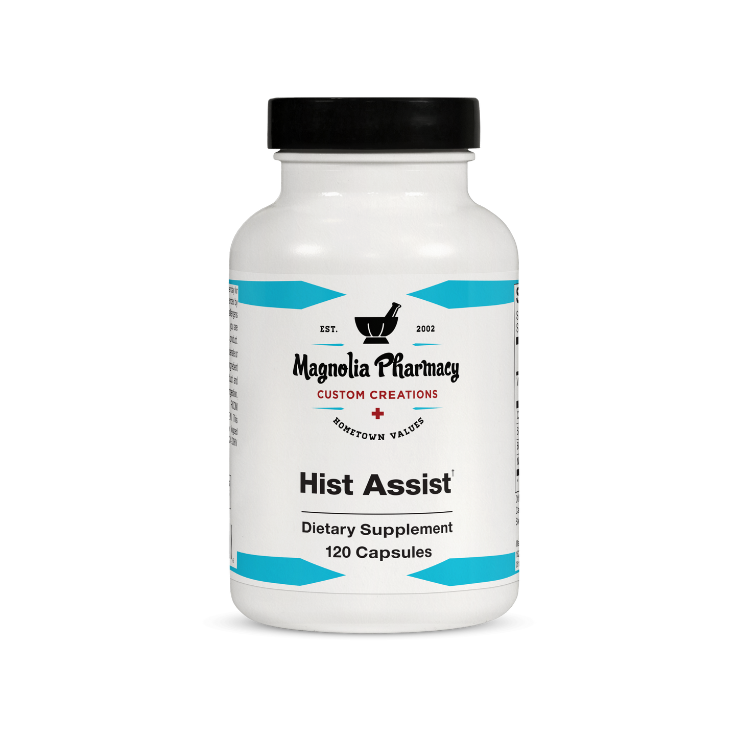 Hist Assist is a targeted blend of flavonoids, antioxidants, proteolytic enzymes and botanicals designed to provide comprehensive support for seasonal challenges caused by common environmental allergens. The formula includes quercetin, bromelain, stinging nettles leaf and N-acetyl cysteine. The powerful combination actively promotes healthy nasal and sinus passages for individuals with elevated histamine and respiratory irritation.